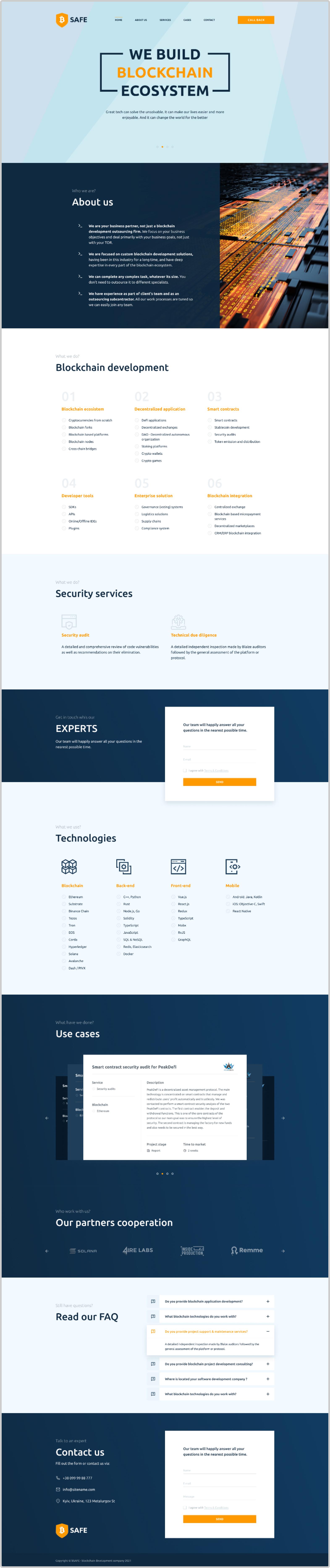 The client came to us with the request to develop a branded landing page for their company that specialises in blockchain development. It was essential to implement the following: