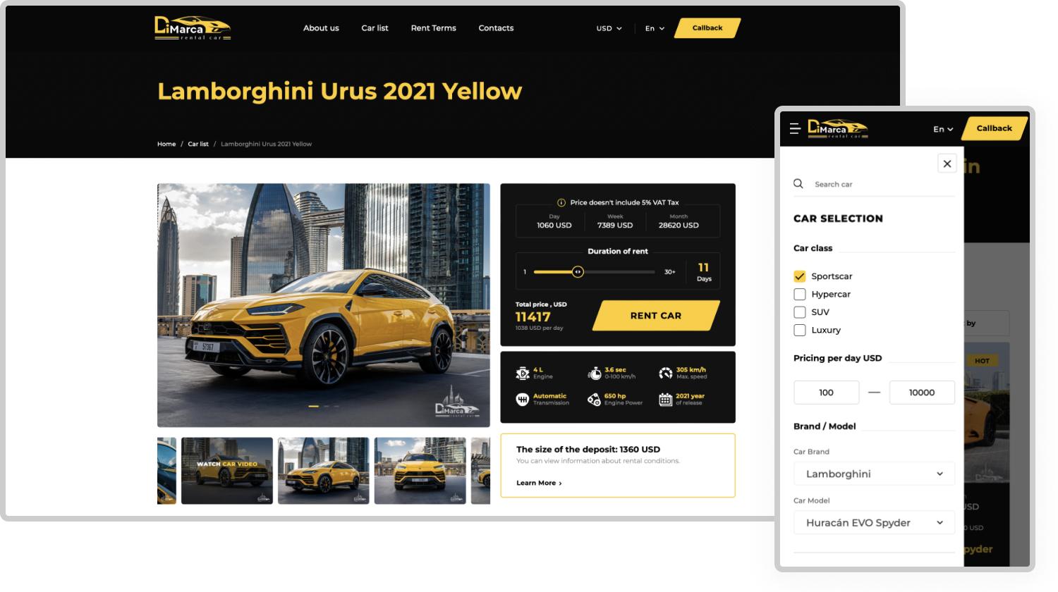 We have developed an emotionally appealing site with simple navigation and a user-friendly interface. Additional features included an online calculator to count approximate rental prices and simple site filters for choosing a car.