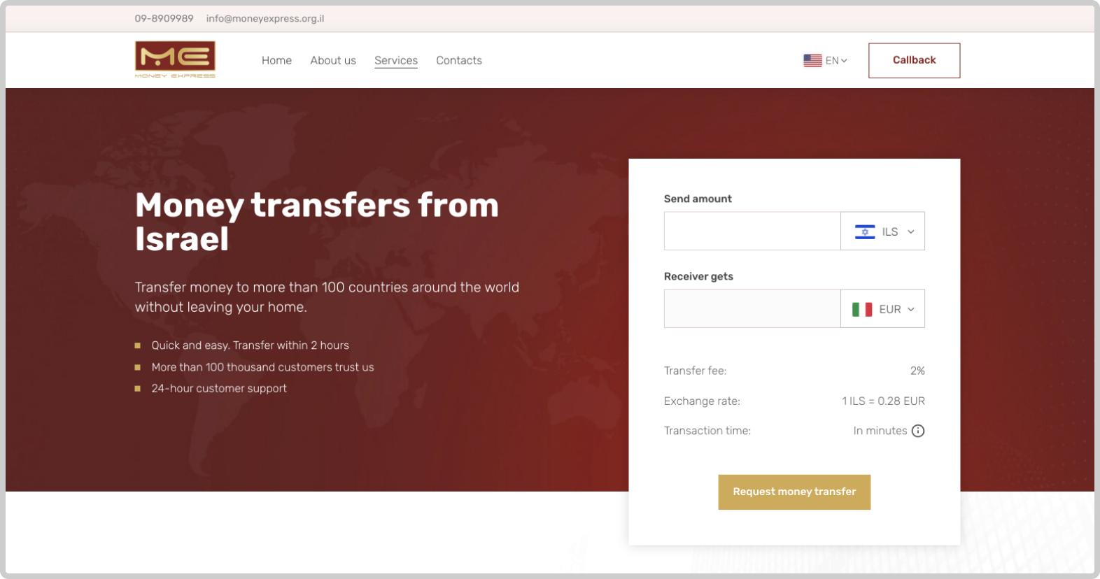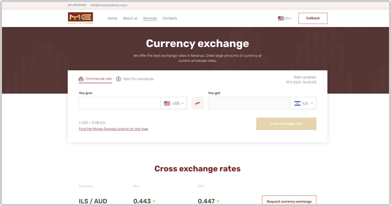 The Money Express company provides money transfer and currency exchange services. Therefore, we have developed additional functionality - three online calculators with currency converter API.